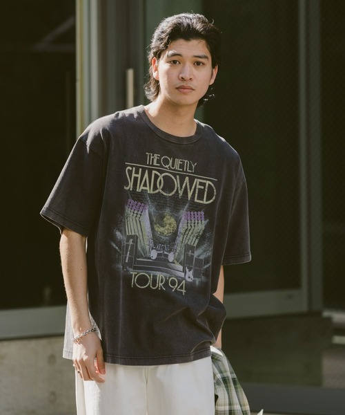 RAGEBLUEならではのバンドTシャツ ブリーチ加工を施すことで、より本格的な雰囲気に ーーー ■ポイント ピグメント加工を施し、古着のような風合いをお楽しみ頂ける半袖Tシャツ。 架空のバンドをプリントしたRAGEBLUEならではのバンドTは、音楽の趣味嗜好に問わず誰でも挑戦しやすい一着。 フロントだけでなく背中にもバックプリントし、後ろ姿もカッコよく決まります。 身幅や着丈を大きくしたオーバーサイズシルエットで、一枚でトレンド感のあるアウトラインに。 袖丈は程よい長さに設定することで、ユニセックスで着やすく女性にもおすすめです。 ■素材 ガシッとしたコットン100%生地を使用しています。 丈夫でお洗濯可能なコットン地は、お取り扱いも簡単です。 ブリーチ加工を施した生地は、色落ちしたようなヴィンテージライクな仕上がりに。 生地をブリーチ加工する際に一度縮ませているので、お洗濯後の形状変化も起きにくく長く愛用して頂けます。 ====== ■参考サイズ M:~175cm L:175cm~ ====== ーーー ■スタイリング 夏のマストアイテムであるプリントTシャツは着こなしも様々です。 加工感のあるデニムやカーゴパンツと合わせると、古着のような王道カジュアルスタイルに。 春始めはシャツのインナーとして合わせて頂き、プリントをスタイリングのアクセントにしたコーデもおすすめです。
