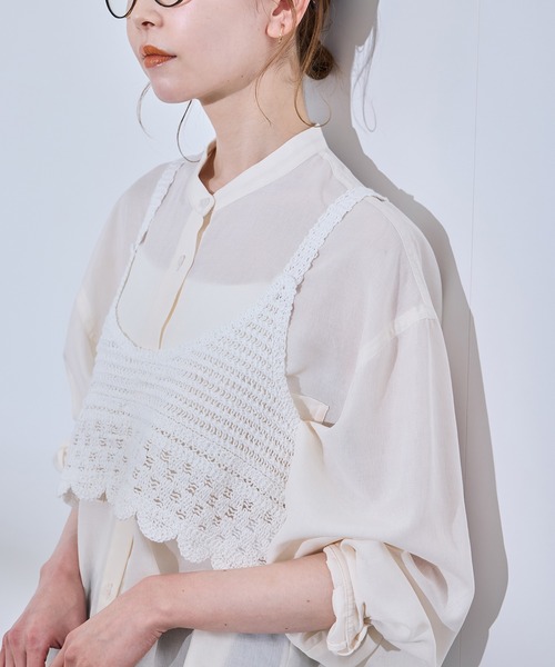 トレンド感をアピールするならレイヤードでチャレンジ!【デザイン・シルエット】 ・レイヤード用ニットビスチェ。 ・スイムウェアのようなショート丈。 ・しっかりとしたクロッシェニット。 ・華奢な肩紐が女性らしさを強調。 【カラー】 ・チャコールグレー、ホワイト、ベージュの合わせやすい3色をラインナップ。 【スタイリングポイント】 ・カジュアルなTシャツ合わせが手軽でおすすめ。 ・タンクトップやキャミソール、ワンピースなど、幅広いウェアに重ねてアレンジを楽しんで。 ・同シリーズでKIDS(品番:GRM25010)も展開しているので、親子お揃いも一押し。 ----------------------------- 裏地:なし 透け感:あり 伸縮性:あり 生地感・厚さ:薄手 季節:春・夏・秋・冬 ----------------------------- ※撮影時の光、お使いのモニター環境によって色の見え方が違う場合がございます。