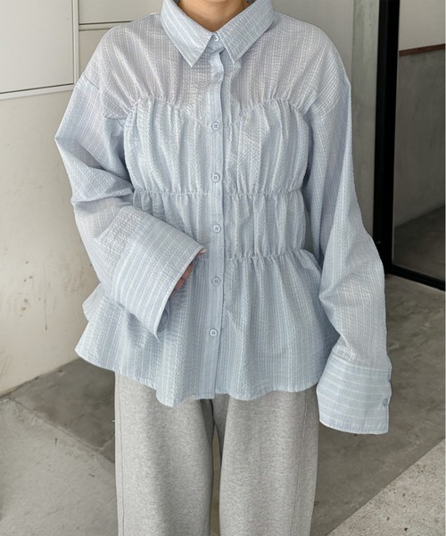 《ストライプシャーリングシャツ》シャーリングで表現したフロントギャザーがインパクト大!デザイン性が高いブラウスが登場♡コルセットデザインがシルエットにメリハリを生み、ウエストマークされて全体的に細見え効果抜群です。ビスチェセットのようなシャーリングデザインと淡いカラーやストライプ柄が春にぴったりの1着です。着用モデル 156cm/162cm透け感 :なし裏地 :なし伸縮性 :なし光沢感 : なし生地の厚さ :普通・お使いのモニターの性能などによっては実際の色と多少見え方が違う場合がございます。また室内、室外での撮影のため実際より明るく映っていたり、暗く映っていたり色味に差異を感じる場合がございます。予めご了承の上、ご注文いただきますようお願いいたします。・生地の在庫有無により生地を再生産する場合、生産する際の温度や湿度など諸条件により、多少色が異なってしまう場合がございます。・記載のサイズ詳細は平置きサイズの為、多少の誤差が生じる場合がございます。サイズ感お色味等大体の参考までにご覧頂きますようお願い致します。・海外セレクト商品に関しましては、ものにより総丈5cm程度の差が生じる場合がございます。予めご了承頂いた上、ご購入いただきますようお願い致します。【お買いものをよりお楽しみいただく為に!】▼商品のお気に入り登録(ハートマークをクリック)完売カラーの再入荷通知や、ラスト1点の通知、セールの通知も受けることができます。▼ブランドのお気に入り登録新商品や再入荷など、いち早くブランドのお得な情報を受け取ることができます。