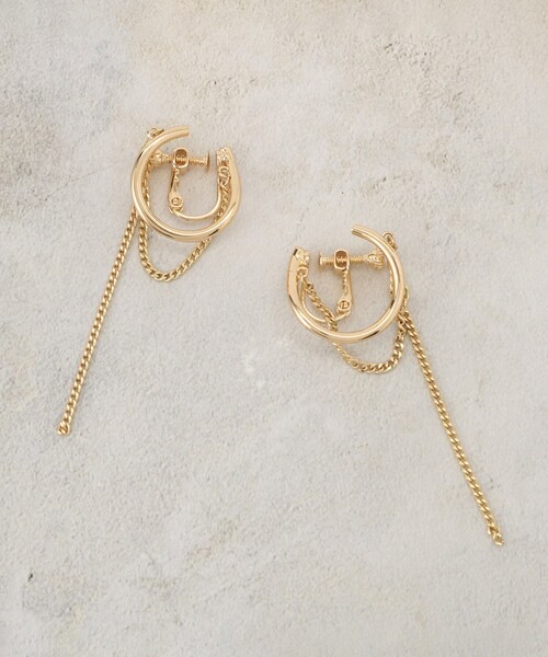 繊細なチェーンデザインのイヤリング。【デザイン】華奢なチェーンをロングシルエットに仕上げたイヤリング。ねじばね式のイヤリング金具なので、お好みのフィット感で着用していただけます。※照明の関係により、実際よりも色味が違って見える場合があります。また、パソコン・スマートフォンなどの環境により、若干製品と画像のカラーが異なる場合もございます。店舗へのお問い合わせ商品番号:769-82103●製品寸法:00:全長5cm モチーフH1.5cm モチーフW0.9cm モチーフD1.7cm備考: