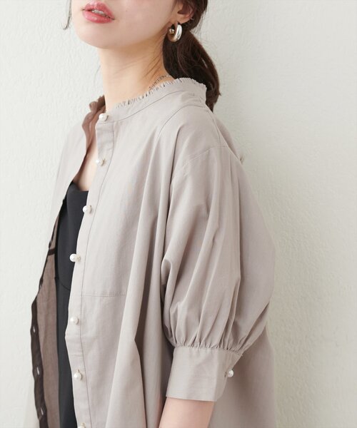 【2025SS natural couture】 リバイバルアイテム!パール釦ヨーク切替シャツ ■Design 人気パール釦ヨーク切替シャツがリバイバルで帰ってきました! シャツの前と袖のボタンはパールを採用し、シンプルでカジュアルになりやすい オーバー気味なシャツも親しみやすさもありつつ、女性らしい上品な印象に仕上がります。 ■Styling オフィスカジュアルにも着回せるきれいめのボトムはもちろん、 デニムなどのカジュアルアイテムや、キャミワンピースとも相性がよく親しみやすさもありつつ、女性らしい上品な印象の着こなしに。 オンオフ着回し万能なアイテムなので、ワードローブにスタメンアイテムに入れたくなる一枚。 ■Fabric コットン配合のシャツ生地で安心感がありつつも、さらっと着やすい軽さ。 ============= お手入れ方法:手洗い 透け感:オフややあり 裏地:なし 伸縮性:なし 光沢感:なし 生地感:ふんわり、軽やか ============= ※着用、お取り扱いの際は、商品に付いている品質表示とアテンションタグを必ずご確認ください。 【お気に入り登録でお得な情報がいっぱい】 ・「商品のお気に入り登録」で再入荷通知や、ラスト1点の通知、セール通知をいち早く受け取ることができます。 ・「ブランドのお気に入り登録」で新商品や再入荷など、お得な情報を受け取ることができます! ※店舗の入荷時期は商品によって異なります。 店頭の在庫状況につきましては各店舗にてお問い合わせください。 ※撮影時の光の関係で、画面上の画像と実際のお色とでは若干の色差が生じる可能性がございます。 また、ご覧いただいているモニター画面や、お使いのブラウザによっても、お色の違いがございますことをあらかじめご了承くださいませ。 20250321 2025SS_natu 25SS