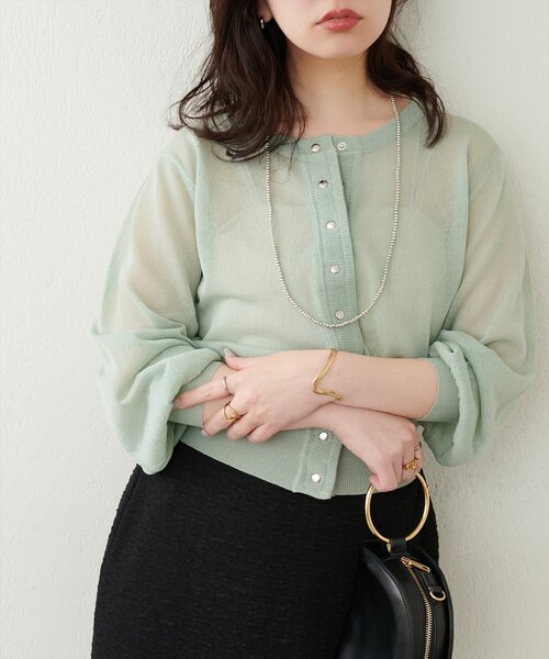 【2025SS natural couture】涼し気なシアー感とクリアな発色がポイントのクルーネックカーディガン■Design 程よいシアー感とハリのある上品な大人のカーディガン。釦を開けてカーディガンとしはもちろん、前を閉じてプルオーバーとしての着用もおすすめです。さり気なく存在感のあるドット釦が、ベーシックなデザインにアクセントをプラス。たっぷりとしたボリューム袖がトレンド感を演出してくれます。■Stylingベーシックなクルーネックカーディガンなので、ノースリーブや半袖の羽織にはもちろん、肩掛けなどでコーディネートにアクセントを加えるのもおすすめです。シアー感のある素材で、夏でも涼しげな印象を与えてくれます。■Fabricクリアな発色と、春夏に最適なドライタッチな素材を使用。春夏の冷房対策、日焼け対策にも便利で、肌寒い秋立ちにも使えます◎====================お手入れ方法:手洗い透け感:あり裏地:なし伸縮性:あり光沢感:なし生地感:さらっとドライタッチな生地感====================※着用、お取り扱いの際は、商品に付いている品質表示とアテンションタグを必ずご確認ください。【お気に入り登録でお得な情報がいっぱい】・「商品のお気に入り登録」で再入荷通知や、ラスト1点の通知、セール通知をいち早く受け取ることができます。・「ブランドのお気に入り登録」で新商品や再入荷など、お得な情報を受け取ることができます!※店舗の入荷時期は商品によって異なります。店頭の在庫状況につきましては各店舗にてお問い合わせください。※撮影時の光の関係で、画面上の画像と実際のお色とでは若干の色差が生じる可能性がございます。また、ご覧いただいているモニター画面や、お使いのブラウザによっても、お色の違いがございますことをあらかじめご了承くださいませ。202503212025SS_natu25SS