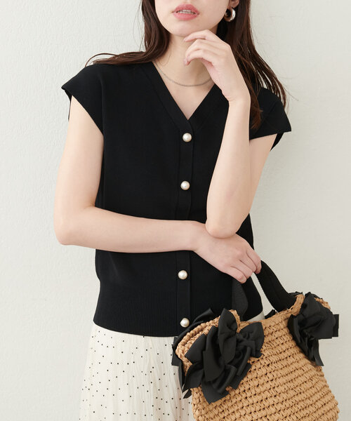 【2025SS natural couture】 パールが目を惹く涼し気ニットプルオーバー ■Design デコルテラインがきれいに見えるVネックデザインのサマーニットプルオーバー。 釦のように施された大ぶりのパールがフェミニンな雰囲気で目を惹きます。 釦ホールはフェイクなので、プルオーバーとしてご着用ください。 二の腕をすっきり見せるシルエットにこだわりやや肩先を覆うスリーブは、露出控えめで1枚でも着やすいデザインです。 落ち感があり優しく身体に沿う形なので、スタイリング全体をすっきりと見せてくれます。 ■Styling パンツにもスカートにも合わせやすい丈感で、ウエストアウトが映える1枚。 フェミニンなスカートはもちろん、デニムとあわせてカジュアルダウンしても◎ トレンドの柄ボトムスとも相性抜群。 足元はミュールやパンプスなどフェミニンテイストなアイテムがおすすめです。 ■Fabric 滑らかで柔らかく、伸びが良いニット生地を使用。 さらっとしていて夏場も心地良い1枚です。 ================== 透け感:なし 裏地:なし 伸縮性:あり 光沢感:なし 生地感:滑らかで柔らかい生地感 ================== ※着用、お取り扱いの際は、商品に付いている品質表示とアテンションタグを必ずご確認ください。 【お気に入り登録でお得な情報がいっぱい】 ・「商品のお気に入り登録」で再入荷通知や、ラスト1点の通知、セール通知をいち早く受け取ることができます。 ・「ブランドのお気に入り登録」で新商品や再入荷など、お得な情報を受け取ることができます! ※店舗の入荷時期は商品によって異なります。 店頭の在庫状況につきましては各店舗にてお問い合わせください。 ※撮影時の光の関係で、画面上の画像と実際のお色とでは若干の色差が生じる可能性がございます。 また、ご覧いただいているモニター画面や、お使いのブラウザによっても、お色の違いがございますことをあらかじめご了承くださいませ。 20250321 2025SS_natu 25SS