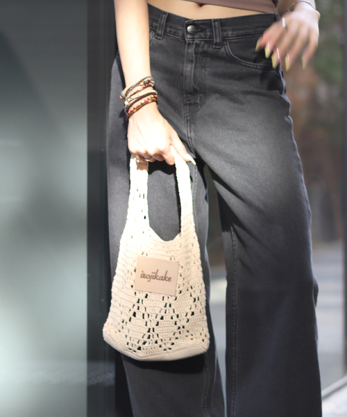 【2025SS】JOINT WORKS1つ1つ手編みされたクロシェットバッグコーディネートのワンポイントとしてアクセサリー感覚で使用可能なアイテムです。【irojikake/イロジカケ】2015年にスタートしたイロジカケは、「外に出たくなる、素敵な場所に連れて行ってくれる服を作りたい」という想いから紗羅マリーが立ち上げたユニセックスブランド。ストリートカルチャーの空気感とアートが色付く個性豊かなデザインでありながら、女性らしい独特な色気を醸し出す。本体:ドライクリーニング