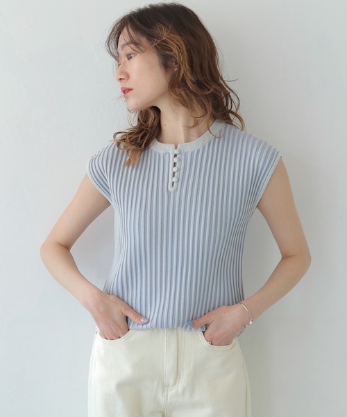 <<<立体的な配色が目を惹く!もちもちサマー二ット>>>【POINT】・配色がポイントになった二重臼ニのサマー二ット。・フレンチスリーブで気になる二の腕もしっかりカバーしてくれます。・フロントのくるみボタンもCLEIOらしいポイントです。・程よくフィットしながらも、立体感のある表面が体のラインを拾わずしっかりカバーしてくれます。【STYLING】・カジュアルに着こなしたい時 ワイドパンツやデニムを合わせるのがおすすめです。・女性らしく着こなしたい時 タイトスカートやマーメイドスカートと合わせるのがおすすめ。・キャミワンピースなどと合わせてレイヤードスタイルもお楽しみいただけます。・シンプルなデザインのため、どんなアイテムとも相性抜群です。【FABRIC】もちっとした柔らかい素材感◆透け感:なし◆厚み:普通◆裏地:なし◆伸縮性:あり※撮影場所により、実際の色味と若干異なる場合がございます。 あらかじめご了承くださいませ。