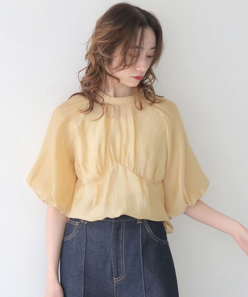 <<<女性らしさ溢れる高見えきれいめブラウス>>> 【POINT】 ・ふんわりとした袖にカップデザインの入ったニュアンスブラウス。 ・柔らかく、肌触りの良いシアー素材を使用し、ギャザーやタックを使って立体的なカップデザインを施しました。 ・少し長めの半袖丈にすることで袖先のたぷっと感がでて、二の腕もカバーできるパフスリーブ袖に仕上げました。・スタンドカラーでスッキリ大人っぽい襟元にしました。 ・ふんわりとしたシルエットが美しく、柔らかい上品な大人の女性にしてくれる高見えブラウスです。 【STYLING】 ・カジュアルに着こなしたい時 ワイドパンツ、デニムと合わせるのがおすすめ。 ・女性らしく着こなしたい時 タイトスカートやマーメイドスカートと合わせるのがおすすめ。 ・スラックスパンツと合わせると、お仕事着にも◎ ・アウトスタイルでもボトムにインしてもどちらでも可愛くご着用いただけます。 ・気分やシーンに合わせて様々なスタリングを楽しんで頂けます。 【FABRIC】 上品な透け感のシアー素材 ◆透け感:あり ◆厚み:薄手 ◆伸縮性:なし ※撮影場所により、実際の色味と若干異なる場合がございます。 あらかじめご了承くださいませ。 <価格改定のお知らせ> 2025/03/21より価格の見直しをさせて頂きます。 商品タグに記載している価格につきまして、旧価格のものが混在している場合がございます。 ご了承下さいますよう、お願い申し上げます。