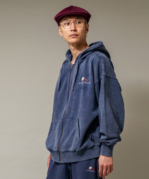 ピグメント加工を施し、ヴィンテージスウェットのような独特の風合いを楽しめるジップアップパーカー。 フロントにはフラワーと【APPLEBUM】ロゴをプリントし、クラシカルなデザインにトレンド感をプラスしました。 短めの着丈が特徴で、スタイリングに抜け感と旬の雰囲気を演出。 カジュアルな日常使いから、少しアクセントを加えたいコーディネートにもぴったりの1枚です。●ブランドのお気に入り登録完売カラーの再入荷時やラスト1点の通知を致します。●商品のお気に入り登録新商品や再入荷等、いち早くブランドの情報を受け取ることができます。ぜひご活用下さい。==========================2005年に東京でブランドをスタートし、日本のみならず世界中で高い評価を受ける〈APPLEBUM〉。A Tribe Called Questの名曲『Bonita Applebum』をブランド名の由来とし、ヒップホップの黄金期とされる80~90年代を生で体感してきた感覚をウエアに落とし込んでいる。これまでに〈STÜSSY〉や〈UNDEFEATED〉などのブランドや、アーティスト・映画といった様々なコラボレーションを実現。中でも伝説のヒップホップグループ「Wu-Tang Clan」とのコラボレーションは、彼らが影響されたカンフー映画のモチーフを日本の名産品であるスカジャンに落とし込み、90’sヒップホップを東京的解釈で発信したAPPLEBUMならではのコレクションとなった。「反骨と革新とユーモア」を哲学として掲げ、アメリカやヨーロッパのストリートと肩を並べられる、日本や東京ならではの価値観や表現を誇りに常に進化し続けているブランドである。==========================