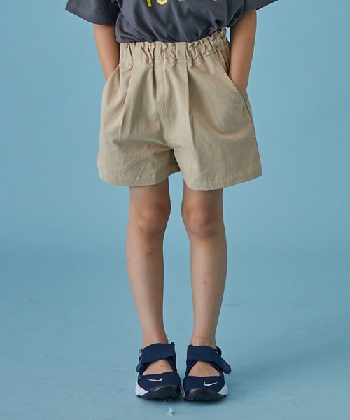夏にマストなショートパンツアイテム。 こちらはガールズ用に考案した、足口広めで丈が短いデザインです。 腰回りにゆとりができる1タックのデザイン。 かわいい淡いピンクと、合わせやすいベージュの2色展開です。 ウエストは全周ゴム仕様。アジャスターがついているので、調節可能です。 ----- 透け感:無し ポケット:あり ウエストゴム調整:あり 伸縮性:無し サイズ・S(90-100) M(110-120) L(130-140) XL(150-160) F(160-170) ※Fサイズは価格が異なります。 MODEL 01 / 114cm / 17.5kg / M(110-120)サイズ着用 MODEL 02 / 118cm / 20kg / M(110-120)サイズ着用 MODEL 03 / 163cm / F(160-170)サイズ着用