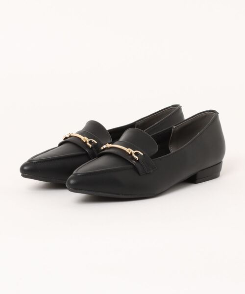 ポインテッドトゥのエレガンスローファー。 ビットが上品でマニッシュなイメージに。 安定感のあるヒールで歩きやすいアイテムです!