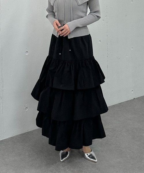■華やかなシルエットが可愛い■ ハリのあるナイロン地でふわっとしたボリュームが可愛いティアードスカート。 共布のベルトがさりげなくポイントになります。 腰回りはフリルを抑え、すっきりと見えるシルエット。 ウエストはサイドがファスナー仕様。背面はゴムなので楽な履き心地です。 裏地付きなので透けにくいのも嬉しいポイント。 ぴったりめなトップスと合わせると一気にトレンドな着こなしに◎ ーーーーーーーーーーーーーーー 透け感:若干あり 裏地:あり 伸縮性:ウエスト背面ゴム 光沢感:なし 生地厚さ:普通 洗濯方法:洗濯可 ※詳しいお手入れ方法は商品についているタグをご覧ください ーーーーーーーーーーーーーーー ※ご利用のモニター環境により、実際の色味と多少異なる場合がございます。 … information … 欲しいitemをお気に入り登録(♡マークをclick) ・お買いのがし対策…完売itemの再入荷やラスト1点の情報をお知らせ ・欲しいitemをお得にget…pricedownになったらいち早くお知らせ ・スムーズ検索…ZOZOのお気に入りアイテムページで簡単checkできるから、再検索不要♪