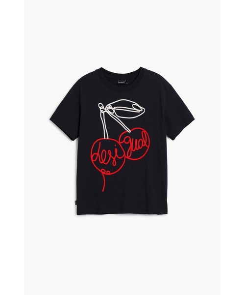 【デザイン】ブラックをベースに、シンプルながらインパクトのあるグラフィックが特徴的な半袖Tシャツ。フロントには白のアウトラインで描かれたチェリーのイラストと、赤い糸で刺繍されたような「Desigual」のロゴが施されています。洗練されたモノクロと鮮やかな赤のコントラストが目を引くデザインで、クラシックなクルーネックとストレートシルエットながらも、遊び心のある個性的な要素を加えた一着。 【スタイル】シンプルなデザインながらもグラフィックが印象的なこのTシャツは、デニムパンツやスカートなど様々なボトムスと好相性。カジュアルなデイリーユースはもちろん、黒のスキニーパンツと合わせればクールな印象に。レイヤードスタイルも楽しめるベーシックなシルエットで、季節を問わず活躍します。 <information> ・アイテムのお気に入り登録 お気に入りした商品の入荷状況や、残り1点となった際の通知、セール情報などをお届けいたします。 ・ショップのお気に入り登録 最新コレクションの入荷情報や品切れ商品の再販売、ショップニュースなど、さまざまな最新情報をご案内いたします。 <pick up> 店舗取り置きサービスがスタートいたしました。ご注文の商品を最短即日、お近くの店舗でお受け取りいただけます。 【Desigualデシグアル】 バルセロナ発のファッションブランド「Desigual(デシグアル)」。スペイン語で“他とは違う”という意味が現すとおり、他のブランドにはない地中海をイメージさせるカラフルな色使いやエキゾチックなパターン、パッチワークやデニムなど着る人の個性を引き立てるアイテムを展開。デイリーにも、ドレスアップにも活躍する幅広いデザインが魅力。レディースだけではなく、メンズやシューズなど幅広いラインナップを展開。ブランド名にもなっているDesigual(他とは違う)は、自分自身が他の人と違うことがどれだけ大切で楽しいことなのかを改めて感じてもらいたいという私たちの願いが込められています。 自由で楽しく、カラフルで前向き。本当の自分を呼び覚ます鮮やかなカラーやプリント、他とは一味違うスタイルはファッションを楽しくするものばかりです。