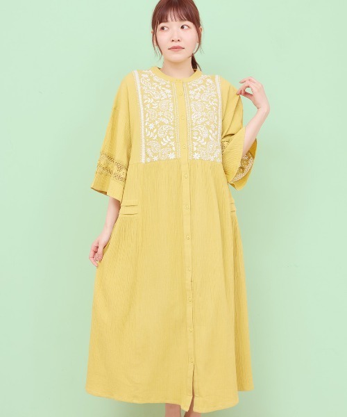 ハンド刺繍のぬくもり溢れるクレープワンピース■デザインインドのカシミール地方が発祥のペイズリー柄をハンド刺繍で表現した贅沢な1枚。落ち着いた色合いで表現したデザインはナチュラルで大人な印象です。ゆったりと広がる袖と、刺繍下にギャザーを入れてフェミニンな雰囲気に仕上げました。ボタンで開け閉めができるので、羽織りとして着回しも可能です◎■サイズ感レディースフリーサイズゆったりとした身幅のオーバーサイズシルエット。足首がちらりと覗くロング丈です。■素材感通気性の良いインド綿100%を使用。動きのあるふんわりとしたクレープ素材になっています。■スタイリングふんわりとしたワイドパンツやスカートと合わせて、ナチュラルなカジュアルコーデがおすすめ。定番のデニムパンツ合わせでもサマになるスタイリングが簡単に完成します。■カラーチャコールグレー/ライトベージュ/イエロー■お手入れ手洗い/ドライクリーニング---------------------------------透け感:あり(ライトベージュのみ)伸縮性:なし裏地 :なし光沢 :なし生地の厚さ:薄手ポケット:なし---------------------------------【 Rico / リコ 】こだわりの詰まったプレミアムコレクション。" Rico "とはスペイン語で「豪華、豊か、おいしい」などの意味があり、英語の Rich のような意味があります。伝統技術や刺繍などを贅沢に施した、一味違ったプレミアムな商品をお楽しみいただけます。【お取り扱い上のご注意】この製品はインド製の生地を使用しています。染め、織りむら等による独自の風合いをお楽しみ下さい。・洗濯やクリーニングによって多少縮んだり、色落ちすることがあります。・濃色品は摩擦や水に濡れますと移染する恐れがありますので、単独で洗ってください。また、淡色の衣類との併用はご注意下さい。・デリケートな素材ですので、激しい運動や極度な力によって、縫い目が開いたり目寄れする事がありますのでご注意下さい。・刺繍、レース、ビーズなどの装飾がある場合は引っかかり易く、解け易いので、お取扱いにご注意下さい。・直射日光や蛍光灯の長時間照射は、変色の要因になりますのでお避け下さい。【TITICACAのお買いものをお楽しみいただくために!】▼商品のお気に入り登録完売カラーの再入荷通知や、ラスト1点の通知、セールの通知も受け取ることができます。▼ブランドのお気に入り登録新商品や再入荷など、いち早くブランドのお得な情報を受けることができます!