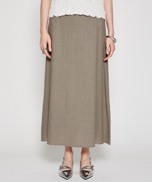 リネンのナチュラルな風合いで、大人の雰囲気が出るフレアスカート 【デザイン】 ・腰回りはすっきりしつつ、程よいフレアラインを出した女性らしいシルエット。 ・裏地付きで透け感を気にせず、安心して着用可能。 ・シンプルデザインながらも柔らかなラインがポイントになり、どんなシーンにもマッチ。 【素材】 ・麻とレーヨンのミックスで、さらりとした柔らかな質感と軽い着心地。 ・ナチュラルな風合いがあり、季節感を演出できる素材感。 ※手洗い可 ※裏地あり 【着こなしポイント】 ・タイトなトップスを合わせ、ミディ丈を際立たせてすっきりとした印象に。 ・リラックスしたTシャツやニットを合わせても程よく大人カジュアルに。 ・サンダルやスニーカーでカジュアルにも、パンプスでキレイめにもアレンジ可能。 ーーーーーーーーーーーーーーーーーーーーーーー 気になるアイテムはお気に入り登録がおすすめ! お気に入り登録で、再入荷通知やお値下げ情報をお知らせ。 お得な情報をいち早くお届けいたします! アイテムページにある、ハートマークをクリックして追加できます。 ーーーーーーーーーーーーーーーーーーーーーーー ※照明の関係により、実際よりも色味が違って見える場合があります。また、パソコン・スマートフォンなどの環境により、若干製品と画像のカラーが異なる場合もございます。 店舗へのお問い合わせ商品番号:R91-72006 ●製品寸法: 01(S):W63cm H93cm 総丈85cm 02(M):W66cm H96cm 総丈88cm 03(L):W69cm H99cm 総丈90cm 備考: