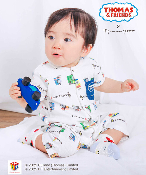 人気クリエイターの「つむぱぱ」さんが優しいタッチで描きおろした「きかんしゃトーマス」との特別なコラボ商品が登場!世界中から長年にわたって愛されているトーマスたちが日常生活に取り入れやすいアイテムに大変身☆パッと目を引く総柄がキュートな半袖ロンパース。トーマスはもちろん、パーシーやゴードンなどトーマスとなかまたちたちがいっぱい!トップハム・ハット卿もいるから探してみてね◎フロントにはアクセントに胸ポケットをオン!お兄ちゃんみたいなデザインがカッコいいデザインです。通園・通学、お外遊び…デイリー使いにぴったりな1着。伸縮性のいい素材を使用しているから着心地も◎付属品がないのでお手入れしやすいのはみんながうれしいポイントです。スナップボタンで全開になるので、首が座る前の赤ちゃんに着せやすく、新米ママにもおすすめ!股下にもスナップが付いていて、足をバタバタしてもはだけにくく、オムツ替えもラクラクな設計になっています。同じ総柄の赤ちゃんサイズの半袖ロンパース(1837-72660)も展開しているので「きょうだい」やお友達とのお揃いコーデもおおすすめ。お揃いコーデで毎日がたのしくなることまちがいなし◎プリント柄が映えるホワイト系とコーデに取り入れやすいチャコールグレーの2色展開です。<トーマス×つむぱぱコラボシリーズ>【キッズ】1810-72650:総柄6分丈パンツ1815-72857:プリントTシャツ1815-72868:ポケット付きTシャツ1814-72575:総柄きんちゃく1814-72586:リュックサック1814-72597:ワッペンセット【ベビー】1837-72660:総柄ロンパース1834-72544:ぐるっとスタイ1834-72555:総柄ロンパースお食事スタイ※右後ろポケットあり。※柄の出方は生地の裁断により一点一点異なります。2025年春夏アイテム【SLAP SLIP(スラップ スリップ)】~子どもの欲しいをカタチに~ヨーロッパのこどものように子どもらしい今しか着れないナチュラルなかわいさを提案どこか上品で清楚感漂うフレンチカジュアルはいつものコーディネートをさりげなく格上げ