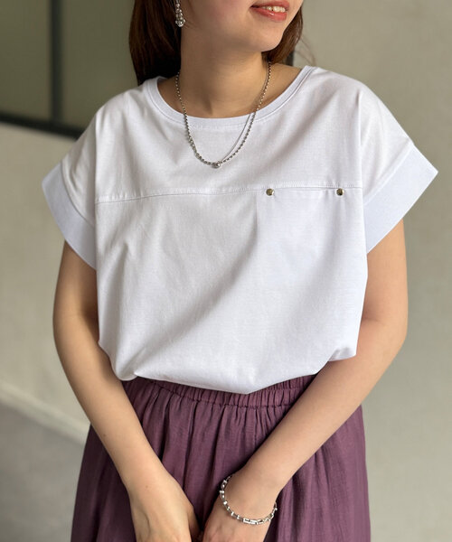華奢見え間違えなしのフレンチTシャツ ■point 接触冷感の生地を使用し、汗染み防止加工が施されております。 吸水速乾性の高い生地を使用しているので、夏場も快適に着用頂けます。 二の腕を程よく隠してくれ、腕が綺麗に華奢見えする絶妙な長さが魅力的なフレンチスリーブ。 半袖のTシャツだとカジュアルすぎて苦手という方にもぴったりの女性らしいデザインです。 さらっとした素材感で肌触りもよく、夏でもべたつきなくストレスフリーな着用感♪ ■coordinate ベーシックなアイテムなので、どんなコーディネートにも合わせていただけます。 フレアスカートやワイドパンツでシンプルコーデや、キャミワンピースやサロペットのインナーとしてもおすすめ! ▼オススメスタイリング▼ ムジはぎフレアスカート カーテンレ-スワイドパンツ 共ベルトナロースカート 【ITAMI別注カラー2/13登場】セミフレアデニムパンツ ■fabric 本体 綿64% ポリエステル36% リブ部分 ポリエステル98% ポリウレタン2% -------------------------------------------------- 裏地:なし 光沢感:なし 伸縮性:なし 生地の厚さ:普通 洗濯方法:弱い洗濯機 -------------------------------------------------- ※生産の都合上、お届け時期が前後する場合がございます。 ご注文いただいた予約商品のお届け時期の確認は、注文履歴ページより行えます。 ※商品画像は製品前サンプルにより着用イメージです。 光や角度により、実物と色味が異なる場合がございます。また表示のサイズ感も実物とは若干異なる場合もございますので、ご了承ください。 ※着用、お取り扱いの際は、商品についている品質表示とアテンションタグを必ずご確認ください。 -------------------------------------------------- ♡をクリックでお得な情報をお知らせいたします。 <商品お気に入り登録> お気に入りアイテムのお値下げ・再入荷・在庫ラスト1点など通知を受けることができます。 <ブランドお気に入り登録> Chez toiの新商品・再入荷・SALE・クーポン配布などお得な情報を受けることができます。 -------------------------------------------------- Cheztoi/シェトワ フランス語で「あなたの家」という意味。 自分にまっすぐでそしてしなやかに生きる女性に向けたブランドです。
