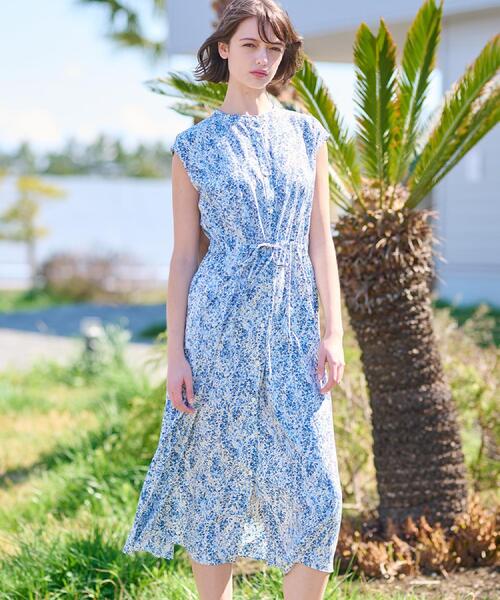 【昨年好評だった春夏に大活躍のフレンチスリーブの楽ちんワンピースが再登場!】 すっきりとしたシルエットと裾のゆれるデザインが、上品でありながらリラックス感をミックスさせた大人な印象を与えます。 スタンドネックと前開きのディテールが知的な印象で、フレンチスリーブは程よく肩を覆い、気になる部分をさりげなくカバーします。 後ろウエストはゴム入りでイージーな着心地。 前はお好みでドロストを絞って着られるデザインなので、あまり絞りを入れずAラインな雰囲気としっかり絞ったシルエットとの2通りのシルエットが楽しめます。 真夏の暑い時期でも涼やかでリラックス感のあるワンピースです。 ポケット付きも嬉しい。 縦糸に混繊糸という糸を使う事で、ドライでソフトな肌触りに仕上げています。 また、緯糸に強撚糸を使用する事で凹凸のある表情になっており、更にストレッチ性もあります。 プリントは、水彩タッチで幾何柄の様にも見るフラワー柄。 幾何ライクな為、可愛らしくなり過ぎず落ち着いた大人な印象です。 グリーンはイエローとグレーがミックスされたカラーで肌馴染み良く着やすい色合い。 ブルーはグラデーションカラーになっており、春夏らしいお色です。 一枚着としては勿論、お好みで羽織としても◎ また、デニムやリネンなどのワイドパンツを下に穿いたレイヤードスタイルもおすすめです。 【仕様】 ・ポケット数:横×2 ・裏地なし ・ペチコート付き ※こちらの商品はやや透け感があります。 ※照明の関係により、実際よりも色味が違って見える場合があります。また、パソコン・スマートフォンなどの環境により、若干製品と画像のカラーが異なる場合もございます。 モデル情報:身長168cm B80 W59 H87 着用サイズ:38(M) 店舗へのお問い合わせ商品番号:085-52003 ●製品寸法: 34(SS):着丈115cm B111cm 肩幅47cm 36(S):着丈117cm B114cm 肩幅48cm 38(M):着丈121cm B117cm 肩幅49cm 備考: