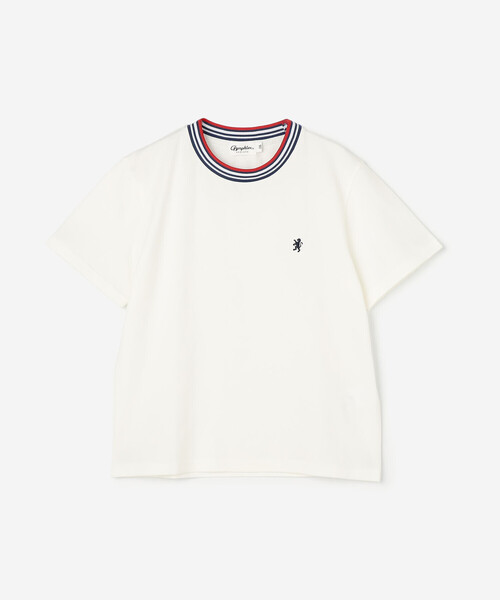 <デザイン>- スポーティーなクルーネック半袖Tシャツ- 首元にマルチカラーラインリブ- 胸にグリフィン刺繍- レギュラーフィット- ユニセックス<素材>- 伸縮性に優れたベア天竺- 毛羽も少なくサラッとしたテクスチャー※着用、お取り扱いの際は商品についておりますアテンションタグ、洗濯ネームを必ずご確認ください。※モデル撮影画像は、光の当たり具合やパソコンなどの閲覧環境によって、実際の色味と異なって見える場合がございます。商品の色味は商品単体で撮影した詳細画像をご参照ください。メーカー品番:#GY-C0459 CCBGymphlex | ジムフレックス1936年軍用ショーツを提供し始め、スポーツウェア・ブランドとして確固たる地位を築く。現在はスポーツというシーンにとらわれず、ユニセックスのカジュアルウェアを展開している。