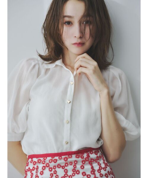 藤井サチ×dazzlin 【商品】 シャツのハンサム感をボイル素材でまろやかに優しく表現し、クリーンな甘さを手にできる1枚。 蕾のようなぽわん袖と、さり気ないハートボタンでフェミニンムードを盛り立てます。 【スタイリング】 フラワー刺繍のスカート合わせがおすすめです。 デニム合わせでカジュアルなコーデもオフの日のデイリーなスタイルにマッチします。 【 お買いものにおすすめの便利機能! 】 ★商品のお気に入り登録 完売カラーの再入荷時や、ラスト1点の時、セール開始時にお知らせします。 ★ブランドのお気に入り登録 新商品や再入荷、セール情報など、いち早くブランドのお得な情報を受け取ることができます。 ぜひご活用ください。 ※実際にお届けする商品と仕様やサイズが異なる場合がございます。 また生産の都合上、お届け時期が前後する場合がございます。