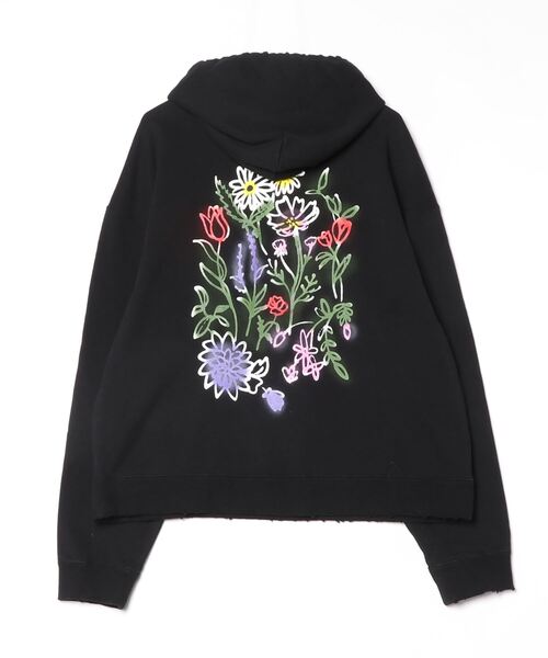 裾とポケット部分にほどよいダメージ加工を施したドロップショルダーのパーカー。 ガーリーな印象の強い花柄を背中一面に配置、スプレーを用いることでストリートに落とし込んだ一着。 花が持つ愛らしさと同時に、咲いて枯れるまでの過程の退廃的な美しさを表現しています。 ゆとりのあるボディは一枚での着用はもちろん肌寒い季節の重ね着も可能な1着です。 *ハンドメイドで製作しているため、1点1点個体差が生じます。 写真とペイントやプリントの具合が異なる場合がございますので予めご了承ください。 *光の加減により商品と写真の色味が異なる場合がございます。 【ATTENTION】 ・ハンドペイントを施しておりますので、着用や洗濯を繰り返すことにより多少ペイントが薄くなります。ペイント部分への摩擦にご注意ください。 ・洗濯は手洗いをおすすめしております。(洗濯機のご使用はお控えください) ・多少染色する場合がございますので、他のものと分けて洗ってください。 Guernika/ゲルニカ デザイナー:乾シンイチロウ 独創的なポップでグラフィティ感溢れる作品を作り続けるアーティスト。 高校卒業後、渡米し本格的にアート活動を開始、2009年より拠点を大阪に移し、2011年にはH.P.FRANCE主催の第2回WALL AUDITIONで大賞を受賞。 翌年より独自のアートを落とし込んだブランド「GUERNIKA」をスタートし、表現の場を問わず活躍しています。 【お買いものをお楽しみいただく為に】 ▼商品のお気に入り登録 完売カラーの再入荷通知や、ラスト1点の通知、セールの通知も受け取ることができます。 ▼ブランドのお気に入り登録 新商品や再入荷など、いち早くブランドのお得な情報を受け取ることができます。