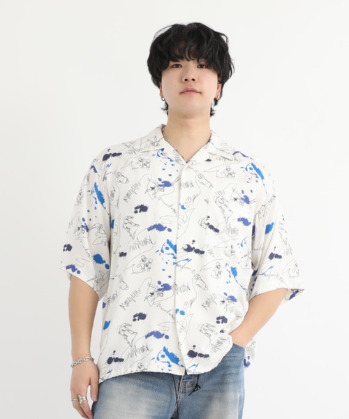 ブランドのルーツでもある音楽カルチャーと現代アートが融合した総柄プリントのアロハシャツ。レーヨン素材のしなやかな風合いと、開衿仕様で軽やかな着心地を実現しました。背裏にはメッシュ部分を使用し、通気性も抜群です。左胸のパッチポケットがデザインのアクセントとなり、インクジェットプリントで仕上げた総柄は繊細で美しい仕上がり。リラックスシルエットで、サラッと羽織れる軽快な一枚です。裾はドローコード仕様で、シルエットの調整も可能。夏にぴったりのデザインと機能性を兼ね備えたアイテムです。