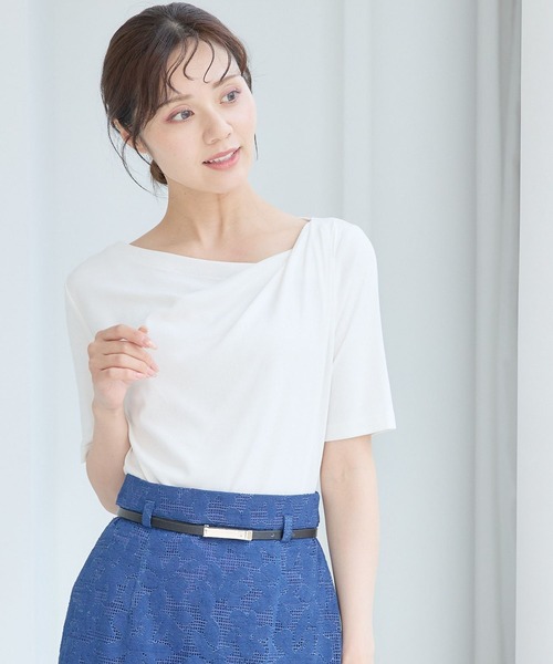 変形ネックが特徴のドレープTシャツ。女性らしい印象に導くドレープでシンプルながら華やぐ一枚です。アシンメトリーなネックは顔周りがすっきりと、デコルテを美しく魅せるデザイン。コンパクトな見た目ですが伸縮性がありリラクシーな着心地です。ジャケットインでも映えON/OFF使えるアイテム。※屋内外の光や照明の当たり具合で、実際の商品の色味とカラー別画像の色味に違いが発生する場合がございます。色味はスタジオ撮影の詳細画像にてご確認ください。※生地の寄り画像が最も実物に近い色味となります。ーーーーーーーーーーーーーーーーーーーーーーー▼ 商品のお気に入り登録 ▼完売カラーの再入荷通知や、ラスト1点の通知、クーポン開始、セールの通知も受け取ることができます。▼ ブランドのお気に入り登録 ▼新商品や再入荷など、ブランドのお得な情報をいち早くお知らせ!ぜひご登録ください!