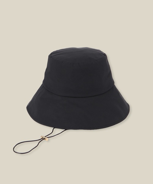 【素材】 程よいハリ感とツヤ感が特徴の強撚ストレッチツイル素材を使用。ドライタッチでしなやかな風合いを持ち、リサイクルポリエステル素材と非フッ素撥水剤を使用した環境にやさしい素材です。 ツバまわりには遮光芯を入れ、強い日差しにも対応できるハットに仕上げました。 裏地には接触冷感機能のあるメッシュ素材を使用。 【デザイン・シルエット】 ミニマルな大人のバケットハットです。 トレンドのバケットハットを上質で高機能な素材で作りました。大人のツヤ感のあるツイル素材を使用したり、付属の金具にゴールドをあしらうことで、カジュアルすぎず街でも使いやすいアイテムに仕上げました。 生地の機能性はもちろん、構造も充実。 裏地頭上部にはポケットが付いていて、酷暑の際には中に保冷剤を入れることができます。 形状が合う保冷剤が付属で付きますので、暑さの厳しい際には冷やしたものをセットしてご使用ください。 また、取り外し可能なコードが付くので、風の強い日や自転車に乗った際も安心。軽くたためるので、室内やハット脱いだ際でも荷物が嵩張らず、ストレスフリーに過ごせるアイテムです。 頭周りは内側のマジックテープを調整することで、多少サイズの調整をすることもできます。 【カラー】 ブラックの1色展開 ※画像の商品はサンプルです。実際の商品と仕様、加工、サイズが異なる場合がございます。 ※撮影場所やライティング、お使いのモニター環境によって色の見え方が異なる場合がございます。 ※商品のカラーは画像の色味をご参照ください。動画は仕様説明のため、色味が実物と異なる場合がございます。