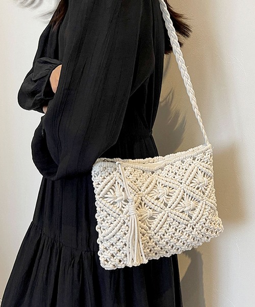 【トレンドライクなクロシェ編みショルダー】大人気、タッセル付きクロシェ編みショルダーバッグ/サマーバッグ。肌触りのよいコットンロープをざっくり編み、春夏シーズンに取り入れたい大人かわいいショルダーバッグに。三つ折り財布やポーチ、ハンディファン、ハンカチなどが入るコンパクトな容量◎開口クチにファスナーが付いているので荷物が外から見えず安心です。きれいめワンピースやカジュアルなデニムコーデなど、どんな服にも合わせやすいおしゃれなアイテムに仕上げました。[サイズ/重さ]高さ20cm/横幅26cm/肩紐高さ56cm210g[素材]コットンおすすめのシーン通勤 オフィス 通学 デート ディナー オケージョン フォーマル サブバッグ、旅行、レジャー ビーチ プール 海 など幅広くお使いいただけます。クリスマスやお誕生日などのプレゼントやギフトなどにも最適な仕上がりです。▼ブランド 【florge】 -フロージュ-「着る人の心や体を癒し包む服、何気ない日常をちょっとだけ特別な日に変えられるアクセサリー」をテーマに、おしゃれでかわいい商品からおとなめオフィスに使える商品までトレンドの人気アイテムをご提案するレディースブランドです。プチプラ商品を多く取り扱っているのも嬉しいポイント♪画像付近のブランド名からぜひご覧ください。