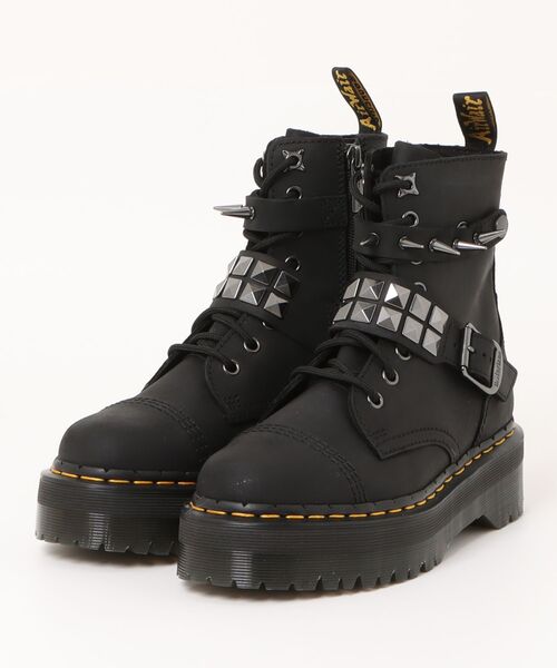 スタッズでエッジを効かせたブーツ。アンダーグラウンドなムードをまとったジップアップブーツ。JADONブーツを、スパイク型スタッズとピラミッド型スタッズで辛口に仕上げています。アッパーには頑丈なフルグレインレザーを使用。無骨なレザーと重厚感のあるハードウェアがコントラストを効かせます。パンクカルチャーからの影響を感じる、タフで美しいドクターマーチンらしいアイテムです。アイコニックなヒールループとウェルトイエローステッチで仕上げています。