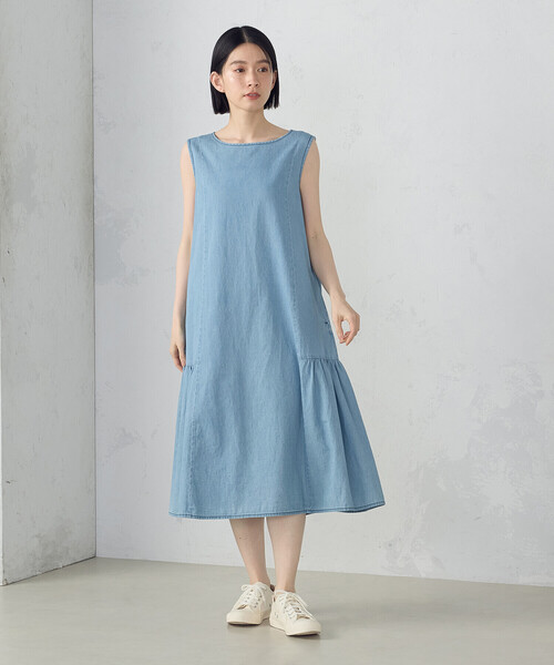 ◆ONIGIRI(おにぎり)のデイリーリラックスワンピース デニム◆ \日本の夏に毎日着たくなる清涼服、ゆったり、からだにここちよい/ 《デザイン》 程よいAラインシルエットにタテ切替を入れてスッキリ見せています。 脇パーツに部分ギャザーを施して女性らしい雰囲気に仕上げました。 後ろ衿ぐりのリボンがデザインアクセントになり、 赤ピスネームがワンポイントです。 コーディネートは透かし柄のフーテッドカーディガンや コットンリネンのカーディガンを羽織るのがおすすめです。 実用性を兼ね備えたシームポケット付きです。 《素材》 綿100%の4.5オンスのデニム素材です。 厚すぎず薄すぎない一枚着として丁度いい肉感です。 綿100%ですので、吸湿・通気性が良いです。 洗い加工(サックスはバイオウォッシュ加工。 ネイビーは1ウォッシュ加工)で色落ちさせて、 サラッとして着心地の良い素材です。 着て洗うたびにデニムならではの風合いが楽しめます。 製品洗いの為、サイズ、当たりや色落ち具合など個体差が出ます。 …………………… 透け感:なし 厚さ:普通 伸縮性:なし 光沢感:なし 裏地:なし ポケット:あり 洗濯方法:洗濯機洗い可 ………………… ※画像の商品はサンプルとなりますので実際の商品と仕様、加工、サイズが若干異なる場合がございます。 ※こちらの商品はFIVE FOXes独自の採寸方法となっています。 本サイトのサイズガイドと採寸方法が異なる場合がありますのでご了承ください。