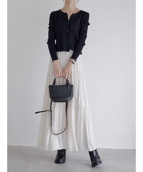 【RE ARRIVAL】歩くたびに軽やかになびくデザインが目を惹くスカート。ロング丈のシルエットで上品な印象に。トップスを選ばず着用できる着回しがきくアイテムです。フェミニンにはもちろん、カジュアルコーデにも。