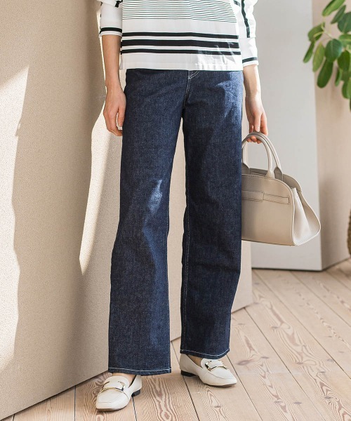 (株)ジャパンブルーで作った、ロートレオリジナルデニム 履いて感じるシルエットの美しさ、美脚見え効果のこだわりシルエット 裾にかけてストレートに伸びたラインで、股下を少し長めに設定しており脚長効果抜群。 ハイパーストレッチの本格デニム素材で、かなり伸度の高いデニムなので 非常に履き心地よく、文句なしのデニムです。 形ごとにステッチカラーを変えているのもポイント。 ワイドにはオフ白のステッチできれいめにこなしています。 ---------------------------------------------------------------- 洗濯方法 家庭洗濯:液温は40℃を限度とし、洗濯機で弱い洗濯ができる。 自然乾燥:日蔭の吊り干しがよい。 アイロン:底面温度120℃を限度としてアイロン仕上げができる。 ドライクリーニング:石油系溶剤による弱いドライクリーニングができる。 ---------------------------------------------------------------- ■モデル身長 165cm/着用サイズ M ※商品タグに記載されたサイズはヌードサイズです。実際の商品のサイズは商品情報の実寸をご確認ください。 ※画像の商品はサンプルとなりますので実際の商品と仕様、加工、サイズが若干異なる場合がございます。 ※お客様のモニター環境により実際のお色と多少異なる場合がございます。 ※撮影状況や光の当たり具合により、色合いが異なって見える場合がございます。 ▼商品のお気に入り登録 ハートマークをクリックし、お好きなカラーを選んでお気に入りに登録 完売カラーの再入荷通知や、ラスト1点の通知、セールの通知も受け取ることができます。 ▼ブランドのお気に入り登録 新商品や再入荷等、いち早くブランドのお得な情報を受け取ることができます。