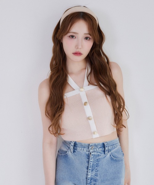 ~NICECLAUP 2025 Early Summer Collection~ラメ糸を使用したキラキラ輝くビスチェ。ホルターネックのリボンは取り外し可能で、アレンジ次第でさまざまな印象を楽しめます。フロントのゴールドボタンが、コーディネートのアクセントに。■おすすめコーディネート品番:0151050230とのセットアップがおすすめ!ハイウエストデニムと合わせて、韓国風の大人コーデに。ミニスカートと合わせて、ガーリーな雰囲気に◎マーメイドスカートと組み合わせれば、オフィスカジュアルスタイルにも。一枚で幅広いテイストのコーディネートが楽しめる万能アイテムです。-------------裏地:なし伸縮性:あり生地の厚さ:普通生地の重さ:普通洗濯:手洗い/ウェットクリーニング-------------【ニットアイテムのお取り扱いのご注意】※ニットアイテムは、素材特性上以下の点にご注意下さい。●この製品は素材の特性上、着用やクリーニングにより、毛羽立ちや毛玉が発生することがあります。1、1日着用した際は、2.3日休ませるなどしてご使用ください。2、毛玉が出来てしまった場合は、毛玉取り器、又はハサミで丁寧にカットして取り除いてください。●この製品はデザイン性、風合いを重視し編みたてたニット製品です。着用により若干の伸びが生じますのでご了承お願いします。又、保存時のハンガーのご使用は避け下さい。※サンプルでの撮影のため、実際のものと仕様や色が異なる場合があります。※室内、室外での撮影のため実際より明るく映っていたり、暗く映っていたりする場合がございます。※品質表示を必ずご確認下さい。【商品のお気に入り登録】完売カラーの再入荷や、ラスト1点のお知らせ、セールの通知を受け取ることができます。【ブランドのお気に入り登録】新作入荷や再入荷情報など、ブランドの情報をいち早くお届けします。ぜひご登録ください♪2025SS