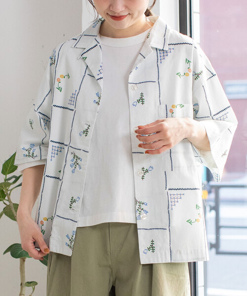 アンティーククロス風のステッチイラストをプリントしたオリジナルのテキスタイル。メンズライクな開襟シャツがデザインソースのオープンカラーシャツ。ボタンを上まで留めるとフラットカラーにもなります。いつもより少し大きめのボタンと左胸ポケットがさりげないポイント。羽織としても使えます。◆注意事項◆可能な限り実物に近いカラーにて掲載しておりますが、ご使用のパソコンやスマートフォンなどの端末の環境によって、実際の色味と異なって見える場合がございます。予めご了承ください。サンプルで撮影している商品もございます。その場合、実際の商品とは色味・仕様が異なる場合がございますので、予めご了承ください。POU DOU DOU プードゥドゥひと手間加えた存在感のある「日常着」いつまでもときめきとかわいいを忘れない方への愛着を持てるワードローブ= お気に入り登録がおすすめ!=お得な情報をいち早くお届け致します。アイテムをお気に入り⇒ SALE START / 完売COLOR再入荷 / LAST1点 etc...ブランドをお気に入り⇒新商品 / 再入荷 /クーポン・セール情報 etc...