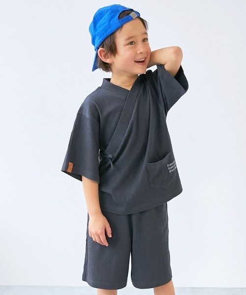 さっと着られる甚平ができました。 被りタイプなので、ママ、パパの着せやすさはもちろん、お子さま自身でもお着替え楽々。 紐がほどける心配がなく、動き回るお子さまにもぴったり。 保育園、学校のイベントや、お祭りにおすすめの1枚。 シンプルなデザインなので、年齢問わず着こなしやすいアイテムです。 ルームウェアとしても着用できる着心地の良さも魅力。 外でも家の中でも、涼し気に過ごせるアイテムです。 ■素材 表情豊かなシャーリング天竺 凹凸のある見た目が特徴の素材。 肌ばなれが良く、程よい伸縮性のある柔らかな風合いなので、暑い日でも快適な着心地です。 伸縮性:あり ■洗濯方法 洗濯機洗い可(弱い洗濯処理) / 漂白剤使用不可 / 乾燥機使用不可 / 日陰つり干し/ 洗濯ネット使用 ■ご注意事項 ・摩擦や水、汗などで色が移ることがあります。ご注意ください。 ・平置きにて採寸しているため、サイズや形に多少の誤差が生じる場合がございます。あらかじめご了承ください。 ・生産時期により、多少色味が異なる場合がございますが、素材・サイズ等の品質に違いはございません。 <価格改定のお知らせ> 2026/3/23より原材料の高騰により価格改定をさせて頂きます。 商品タグに記載している価格につきまして、旧価格のものが混在している場合がございます。 ご了承下さいますよう、お願い申し上げます。 ー devirockについて ー 子育てがもっと楽しくなる社会を目指し、親と子が感じる課題を解決する""新しいあたり前""を提案しています。 男の子・女の子のデイリーウェアを中心にラインナップ。ベーシックからトレンドまで幅広いデザインと、ベビーからキッズまでの豊富なサイズ展開が魅力の子供服ブランドです。