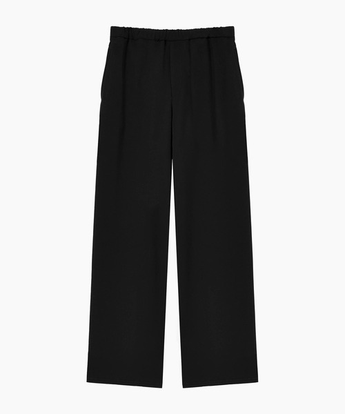 軽量で膨らみのあるポリエステル糸を使用したポリエステルツイル素材を使用したストレートパンツ。 光沢の少ないマットな表面感で、適度なボリュームとソフトな風合い、体に馴染むような落ち感が特徴です。 シワが入りにくく扱いやすい素材になっています。 脇のシームラインを無くし、履き心地の良い自然なシルエットを作り上げています。 ほどよくゆとりを持たせたヒップから裾にかけて、ルーズフィットのストレートシルエットです。