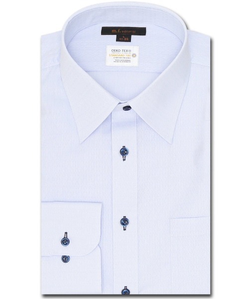 エムエフエディトリアルメンズ/m.f.editorial:MEN 形態安定 吸水速乾 スタンダードフィット レギュラーカラー長袖シャツ ■素材特徴 ポリエステル65% コットン35%の素材を使用しています。コットンの柔らかい風合が肌に優しく、ポリエステルが加わることで強度も増し洗濯後に乾きやすい生地です。素材や製品に有害な化学物質が含まれていない、世界トップレベルの安全な繊維製品であることを証明する「OEKO TEX STANDARD 100」の認証タグ付きです。サスティナブルな環境型社会に貢献するエコと機能が両立した、コストパフォーマンスに優れた素材です。 ■機能 【形態安定】洗濯後シワが入りにくく、ご家庭でのお手入れも簡単。 【吸水速乾】汗を素早く吸収して乾かし、サラッとした着心地をキープ。 【マシンウォッシャブル】洗濯機で洗えます。(要ネット・標準水流) ■デザイン ドビーの織り柄(アーガイル)で奥行きのある表情が楽しめます。衿型はあらゆるシーンで使えるスタンダードなレギュラーカラーを採用しています。タイドアップには、結び目が小さくすっきりとした印象のプレーンノットが好相性です。 ■シルエット スタンダードフィットモデルです。ボディラインに心地良くフィットして、スタイリッシュに着用していただけます。袖ぐりの可動域を広げて動きやすく、ウエストをシェイプさせて美しいシルエットを実現しています。 ■コーディネート ワイシャツ、ビジネスシャツ、ドレスシャツとして、スーツスタイルやジャケットインに大活躍してくれます。ビジネスシーンからプライベートまでオンオフ兼用で着回し可能です。 モデル:スタンダードフィット シーズン:春夏 展開カラー:サックス *アテンションタグ・洗濯ネームを御確認の上、着用又は取り扱い下さい。 *光の当たる場所や高温多湿になる場所での保管は避けて下さい。 *使用の有無に関わらず、経年劣化は進行いたしますのでご了承下さい。 *生地の裁断・縫製方法により、写真と同様の柄が出ない場合がございます。 【お取り扱い方法について】 *形態安定加工シャツは、ご家庭での洗濯を基本にして作られています。 *フロントボタンを留め、洗濯ネットに入れて洗うと生地が傷みにくくなります。 *ボタンダウンの場合は、衿先ボタンを外してから洗濯してください。 *しつこい汚れには部分洗い用洗剤を塗布し、つけ置きすると汚れ落ちが良くなります。 *水分の重みでシワを伸ばす性質なので、滴が垂れるくらいの濡れ干しが基本です。 *脱水時間は15秒程度の短めに抑え、シワが付く前に直ぐに干すのが理想です。 *洗濯機から取り出したら、ザッとふりさばき、シワを伸ばしながら形を整えてください。 *多少厚みのあるハンガーにかけて、風通しの良い場所で陰干ししてください。 *シワが気になる部分は、中低温でアイロンをかけてください。 *高温・高湿プレスはお避け下さい。 *衿・カフス部分はのりづけをしないで形を整えてください。