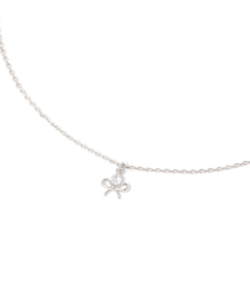小ぶりなリボンモチーフをあしらったネックレス。さりげないデザインで、オンオフ問わずにお使いいただけるアイテムです。