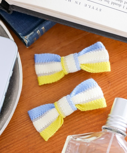 デイリーに使えるリボンモチーフ 涼し気なカラー使いがカジュアルで可愛いヘアクリップ。 幅広いレングスに使いやすく、さっと付けるだけで爽やかな印象に。 オンオフ問わず、幅広いコーディネートにおすすめです。