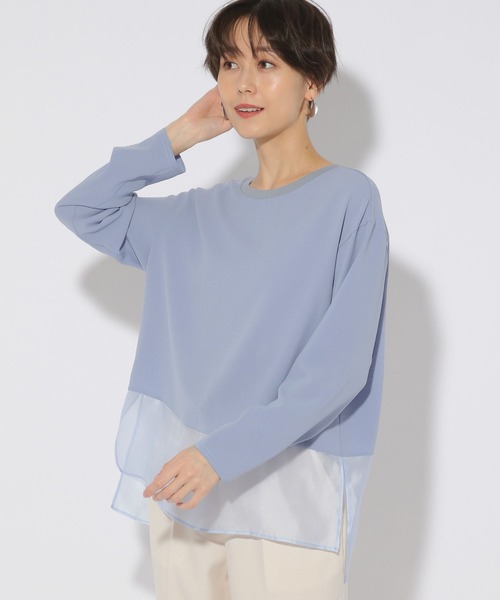 シアー素材の切り替えがトレンド感を演出!!トレンドのシアー素材で切り替えた裾部分がポイント♪レイヤードで裾を見せるスタイリングはもちろん、体のラインを拾わないシルエットなので1枚でも着ていただけます。シアー素材が抜け感を出してくれて今年らしいこなれたおしゃれが決まります。ーーー◆スタイリングサテンパンツと合わせたシンプルなスタイリングは大人のこなれ感を出せおすすめです。【素材】・マシンウォッシャブル・さらっとした着心地とシャリ感のある異素材のドッキング素材【悩みに“効く”ポイント】・ゆとりのあるシルエットで体のラインを拾わない・シアー切り替えで抜け感のあるスタイリングが決まる【気になる商品は「お気に入り」登録を】ハートマークをクリックし、お気に入りに登録すると在庫残り僅かの通知や、再入荷通知などの情報を受け取ることができます。