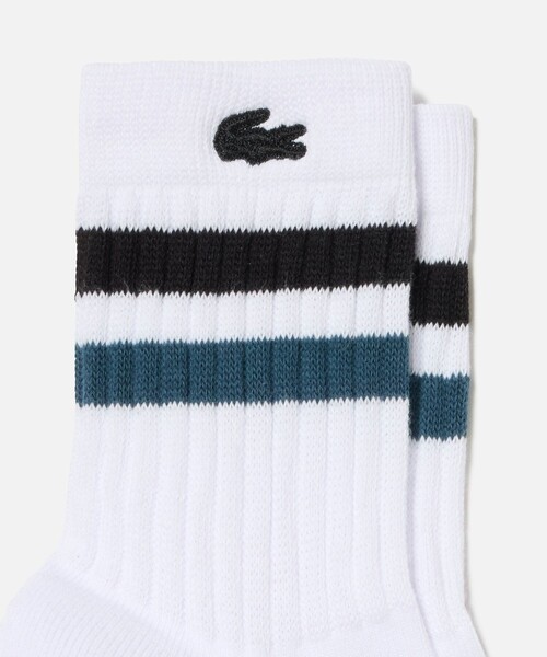 足元からスポーティなフィーリングをプラスバイカラーの2ラインがスポーティなフィーリングを放つアメリカンリブソックス。カラフルなワニロゴ刺繍も目を引くアクセントに。コットン×ポリエステルのブレンドニット素材が適度なフィット感に仕上げ、足底のパイル地切り替えがクッション性をプラス。一日中快適な履き心地を叶えてくれるアイテムです。クシュッとした表情が人気のアメリブソックス・コットン×ポリエステルのブレンドニット素材・トレンドのアメリブデザイン・トップに配したスポーティーなバイカラーボーダー・豊富なカラーバリエーション・足底はクッション性の高いパイル地切り替え