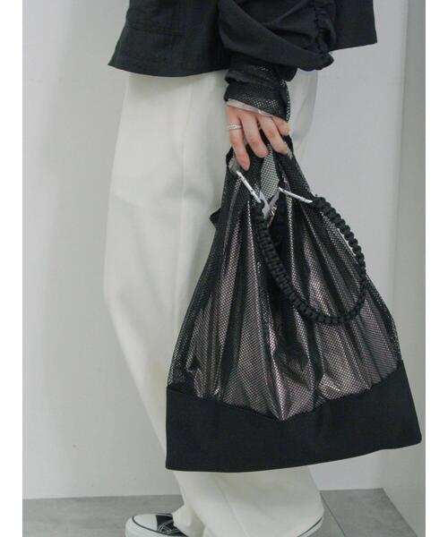 異素材のコンビネーションがスタイリッシュなメッシュトートバッグ。 カラビナでストラップの着脱が可能◎ シャイニーな輝きを放つインバッグも存在感を演出します。 組み合わせによって様々なアレンジが楽しめるマルチWAYデザインが魅力的なアイテムです。 ※商品画像は、撮影環境やお客様のご利用のPC・スマートフォンのモニター環境などにより実物と色味に差異がある場合がございます。 【その他採寸】 F 全長:[ショルダー]53cm