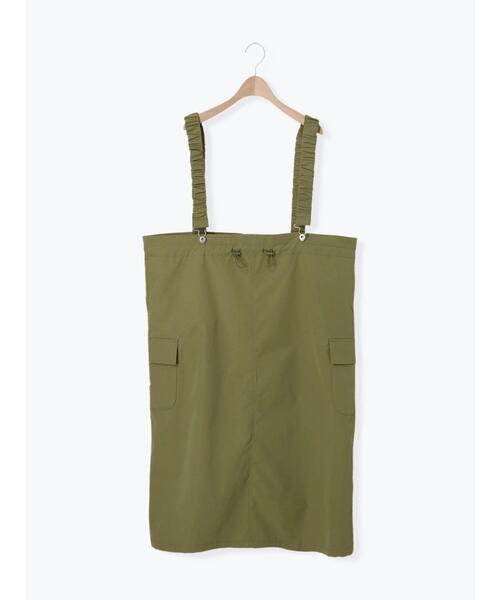 くしゅっとしたサスペンダーがスタイリングのワンポイントになるスカート。 サスペンダーは取り外し可能なので、気分やシーンに合わせた着こなしを楽しめます。 サイドに施されたフラップポケットがアクセントに。 どんなトップスにも合わせやすく、コーディネートの幅が広がるアイテムです。 ※商品画像は、撮影環境やお客様のご利用のPC・スマートフォンのモニター環境などにより実物と色味に差異がある場合がございます。 【その他採寸】 F ウエスト:[ドロスト仕様]110cm 全長:[サスペンダー]65-77cm