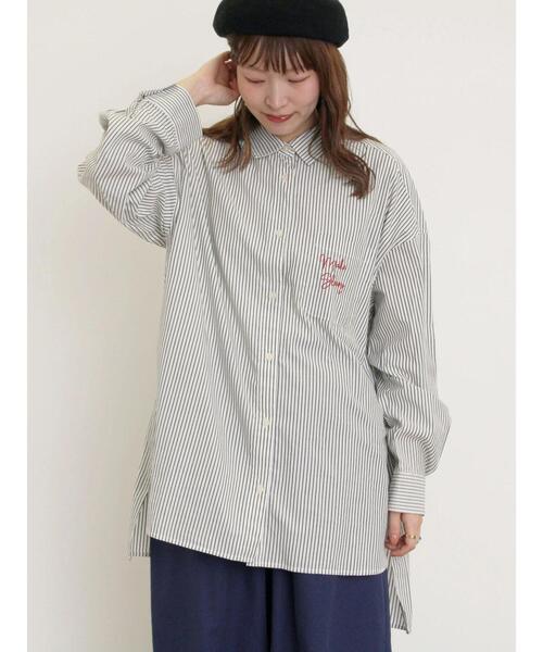ゆったりとしたルーズシルエットがこなれ感を演出するシャツ。 胸ポケットには英字ロゴを施し、コーディネートのワンポイントになります。 前後差のある裾の長さが後ろに流れるようなスタイリングを実現。 パンツスタイルと合わせたきれいめな着こなしがおすすめです。 ※商品画像は、撮影環境やお客様のご利用のPC・スマートフォンのモニター環境などにより実物と色味に差異がある場合がございます。 【その他採寸】 F 着丈:[前]73cm[後]83cm