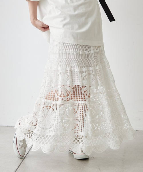 2025SS【continuer de NICE CLAUP】 かぎ針編みで涼しげな印象たっぷりなロングスカート! ■ デザイン ・かぎ針編みが程よい抜け感を出してくれるスカート ・取り外し可能な裏地付きなので裏地を外してレイヤードスタイルも楽しめます! ・オフとアイボリーの2色展開なのでコーデを明るくしてくれます♪ ■スタイリング ・シンプルなTシャツ合わせでもオシャレに決まるスカート ・Iラインのシルエットなのでペプラムデザインのトップスと合わせても可愛く着こなせます! *********************** 裏地:あり 透け感:あり(ペチコート付き) 伸縮性:ウエストゴム 光沢感:なし 生地の厚さ:春~夏に活躍する生地感 *********************** -INFORMATION- ◆商品のお気に入り登録 ・完売していても再入荷時に再入荷通知を受け取ることができますので、是非ご登録ください♪ ◆ブランドのお気に入り登録 ・新商品や再入荷などの情報を受け取ることができますので、是非ご登録ください♪ ※屋外の光や照明の当たり具合で、実際の商品の色味とカラー別画像の色味に違いが発生する場合がございます。 商品の色味はスタジオ撮影の詳細画像にてご確認ください。 ※ご注文いただいた予約商品のお届け時期の確認は、注文履歴ページより行えます。 ◆返品・キャンセルについて ・着用・洗濯後の返品・ご交換は致しかねます。 ・商品到着後、着用前に商品を確認して頂きますようお願い致します。