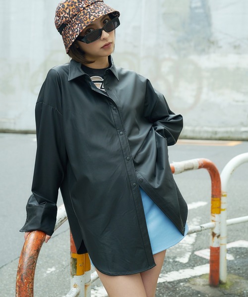 しっとりとした質感とセミマットな風合いが高級感のある、上質な合成皮革のオーバーサイズシャツ。主役トップスとしてはもちろん、ライトアウターとして春秋の羽織りジャケットとしても使えるので、ロングシーズン着回せる優れもの◎柔らかくストレッチ性があり、程よいハリ感&ゆるっとした落ち感を併せ持つしなやかな生地で、レザーにありがちなゴワつきや動き辛さのない、ストレスフリーな着心地に仕上がっています。サイドに入った深めのカーブスリットとラウンドしたバックヘムで裾周りに動きがプラスされ、シンプルながらもモードな遊び心のある印象に◎肩掛けやウエストマークの着崩しアレンジでもバランスが取れるよう、袖口を広めに設計したワイドスリーブも旬なシルエットで、大人な抜け感を演出します。
