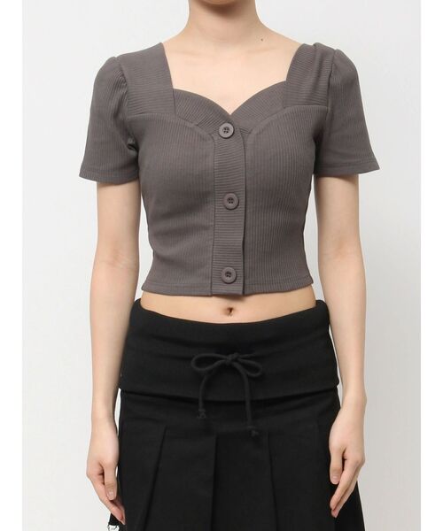 EMODA(エモダ)で大人気のフロントボタンショートリブトップが今年も登場! ■デザイン 伸縮性のあるリブ素材を使用したショートトップス。 ネックのデザインと袖のシルエットで女性らしさを演出。 シンプルで着回しの効くデザインです。 ■スタイリング シンプルなデザインなので、 サイドラインスリットパンツやラップレイヤードスカートのようなトレンドデザインのボトムとのスタイリングがイチオシ。 女性らしい印象のトップスなので、カットアウトルーズジーンズやボールドリップドルーズジーンズのようなカジュアルなワイドデニムとのスタイリングも今季らしい雰囲気でおすすめです。 ※着用画像はフラッシュの加減で実際の製品と色味等が異なる場合がございますので、生地のズームアップ画像をご確認ください。 ※ご利用の端末画面の設定により実際の商品と色味が異なる場合がございます。 【商品特徴】 透け感:なし 伸縮性:あり 生地の厚さ:普通 サイズ感:普通 裏地:なし ポケット:なし