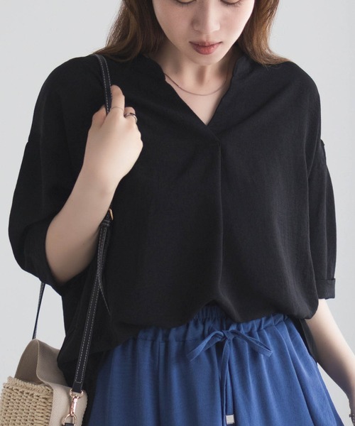 オールマイティーに活躍する、バンドカラースキッパーシャツ。 カラーは、ブラック・オレンジ・ブルー・ベージュの4色展開です。 ■デザイン バンドカラーのスキッパーデザインは、シンプルながらも存在感があります。 背中のタックがふんわりとしたシルエットを演出します。 ■ポイント 表面感のあるポリエステル素材を使用。 凹凸のある素材が、さらっとした肌触りを生み出し、軽量なので夏に最適です。 接触冷感機能付きで、暑い日も快適に過ごせます。 洗濯機で洗えるので、お手入れも簡単。 シワになりにくいので、旅行や出張にもおすすめです。 ■コーディネート デニムに合わせればカジュアルに、スラックスに合わせればハンサムに、スカートに合わせればきれいめに。 どんなスタイルにもフィットする万能なアイテムです。 ********************** 透け感:あり 裏地:なし 伸縮性:若干あり 光沢感:あり 生地の厚さ:薄手 ********************** モデル身長:156cm 着用サイズ:M ■品番 352-3213 [02212000349] -INFORMATION- ◆商品のお気に入り登録をおすすめします。 ♡をクリック! 完売カラーの再入荷や、ラスト1点の通知、セールの際の通知を受ける事ができます。 ◆ブランドのお気に入り登録もおすすめ!新商品や売り切れ商品の再入荷など、いち早くブランドのお得な情報を受け取ることができます!是非ご登録ください♪ ※掲載画像の商品の色味は、サンプル撮影であることや屋外や屋内の光の照射や角度により実物と色味が異なる場合がございます。 また表示のサイズ感と実物は若干異なる場合もございますので、予めご了承ください。 ※他のキャンペーンにより、期間中に価格が変動する場合があります。 ※ご注文いただいた予約商品のお届け時期の確認は、注文履歴ページより行えます。 ※他のキャンペーンにより、期間中に価格が変動する場合があります。※セールは予告なく終了させていただく場合もあります。