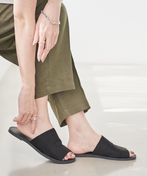 シンプルなのに洗練。どこへでも馴染む、大人のフラットサンダル。 ■デザイン/素材 シンプルながら上品なスエード調素材を使用したフラットサンダル。 幅広のストラップが足をしっかりホールドし、快適な履き心地を実現。 フラットソールで歩きやすく、カジュアルにもキレイめにも合わせやすいデザインに仕上げました。 柔らかなインソールが足に優しく、長時間の使用でも快適に過ごせます。 シーズンを問わず活躍する一足で、デイリー使いにぴったりです。 【注意点】 ※撮影商品はサンプルの為、実際の仕様と異なる場合がございます。 ※画像の商品は光の照射や角度、お使いのモニター環境により、実物と色味が異なる場合がございます。スタジオ物撮りの画像が実物の色味に一番近くなっております。 ※予約商品の場合、お届け予定はあくまでも目安となります。 生産の都合上、お届け時期が前後したり実店舗入荷時期とずれる場合がございますので、あらかじめご了承ください。 品名:スライドフラットサンダル 品番:76826030265