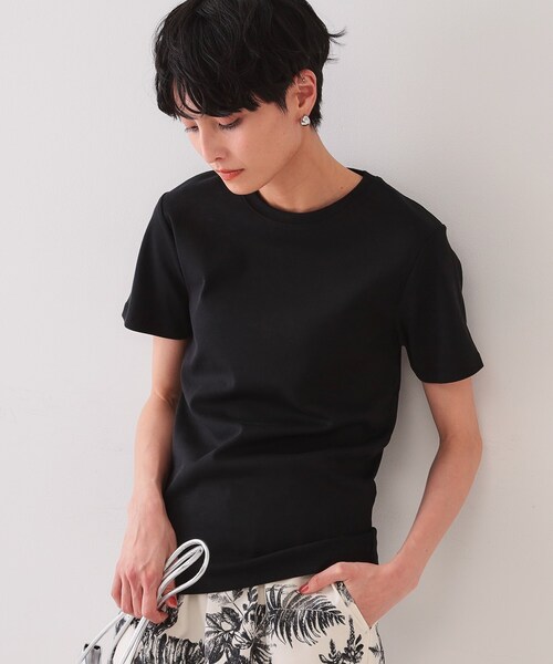 こだわりのサイズ感と、着心地の良いフィット感がポイント! 綿100%のコンパクトなベーシックTシャツ 【デザイン】 ・ストレッチ性があり身体に美しくフィットする、ジャストサイズのベーシックTシャツ。 ・透け感や身体のあたりが出にくい、ほどよく厚みのある素材感。 ・やや詰まった襟のデザインで、品良くコンパクトに着られます。 ・すっきりと、きれいに見えるバランスにこだわった、着回し力の高いシンプルなアイテム。 【素材】 ・肌ざわりの良いコットン100%の素材。 ・伸縮性の高いフライス編みを採用しているので、ほどよいフィット感はありながら、締め付け感が少なく楽な着心地です。 ※照明の関係により、実際よりも色味が違って見える場合があります。また、パソコン・スマートフォンなどの環境により、若干製品と画像のカラーが異なる場合もございます。 モデル情報:身長165cm B72 W57 H84 着用サイズ:38(M) 店舗へのお問い合わせ商品番号:637-12212 ●製品寸法: 36(S):着丈60cm B74cm 袖丈17cm 肩幅35cm 38(M):着丈61cm B77cm 袖丈17cm 肩幅36cm 40(L):着丈62cm B80cm 袖丈18cm 肩幅37cm 42(LL):着丈63cm B84cm 袖丈18cm 肩幅38cm 備考:
