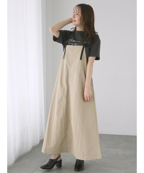 細ベルトのストラップが上品なアクセントをプラスするナイロンキャミワンピース。綺麗に広がるAラインシルエットも女性らしさを演出してくれます。カットソーやブラウスなど、合わせるトップスによって様々な着こなしのアレンジも楽しめる1着です。※商品画像は、撮影環境やお客様のご利用のPC・スマートフォンのモニター環境などにより実物と色味に差異がある場合がございます。【その他採寸】F 着丈:123-136cm